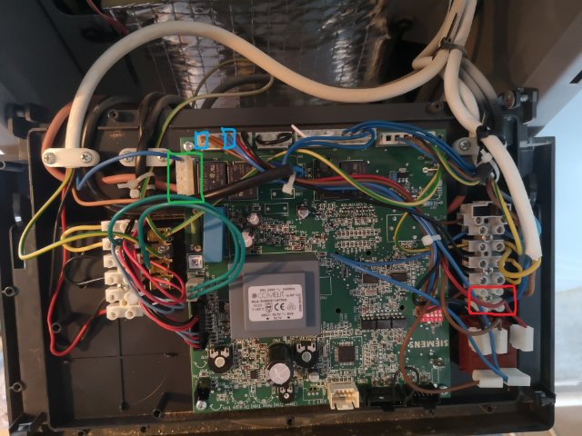 И второй вопрос, в документации описана возможность подключения насосов контура отопления (на фото отметил синим). Как я понимаю, туда через контактор нужно было подключать все насосы кроме ГВС и циркуляционного. Если это так где на фото расположены клеммы подключения насосов контура отопления?