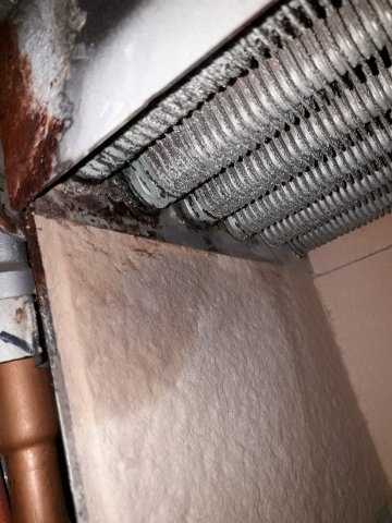 Котел Baxi Mainfour 240F. Полгода назад начало незначительно падать давление. Подпитывал с периодичностью раз в 2 недели. Проверил СО, протечек не выявил. Работает и ладно - подумал я. Сегодня только руки дошли вскрыть котел и посмотреть, есть ли протечки. И нашел. Все на фото. Теплообменник под замену?