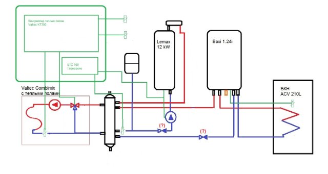 То, что можно просто докупить трех-ходовой с датчиком понимаю, но тогда мощность нагрева БКН будет максимум 24 кВт.
