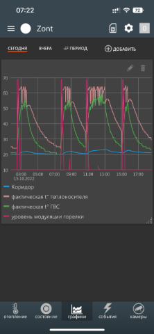 Пару месяцев назад стал счастливым обладателем газа на даче. Котел Baxi луна 3. Подключил Zont smart через адаптер опентерм. Датчик комнатной температуры установил в комнате и подключил к Zont. В режамах установил работу котла по комнатной температуре 21 или 22 градуса. Котел в сутки включается от 3 до 5 раз при температуре на улице 8-9 градусов и ночной до -1.
