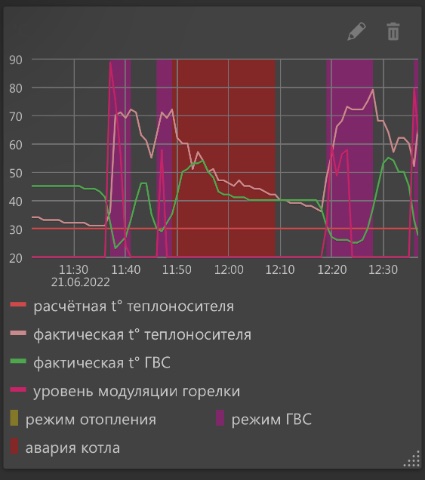 И еще заметил странность в графиках с приложения ZONT. Когда включается режим ГВС на графиках отображается рост температуры теплоносителя. Так и должно быть?