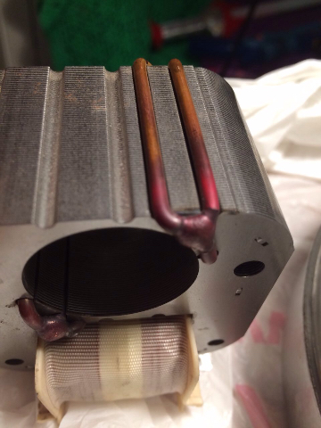 Идет большой ток... Это натолкнуло меня на мысль о проверке. Логика такова, коль идет большой ток, значит витки должны гретья ( их два по два, всего четыре). И греются.