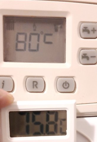 Сегодня произвел замеры температуры подачи и обратки непосредственно на выходных патрубках котла с помощью цифрового термометра, предварительно сверив его показания комнатной температуры с 2 спиртовыми и 1 механическим термометром. На дисплее котла показана фактическая температура подачи 80 град., а на термометре - 75-76 град. Температура обратки - 65-66 град. Можно ли говорить о неисправности накладного датчика температуры котла? Дельта 10-11 град. - это о чем говорит?