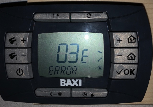 Приехал проверить все ли в норме с СО и котлом. На дисплее ошибка 03E!!! Начал искать в инструкции. Там про дымоход… посмотрел на дымоход - сосулька 200мм. Сбил. Естественно не помогло. Такие сосульки сбивал периодически пару раз в неделю. Иногда оттаивали сами так как температура была близка к нулю. Ну взял лестницу, фонарь, заглянул внутрь, а там
