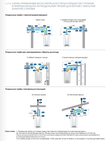 - раздельные трубы с вертикальным выходом. ну опять же нет тут разделения в стену и кровлю, только в кровлю две трубы через соединитель 2. Почему Baxi не рассматривает такого и есть я так захочу сделать, то получается мне не надо соединитель 2 и окончание 6 коаксиальное...