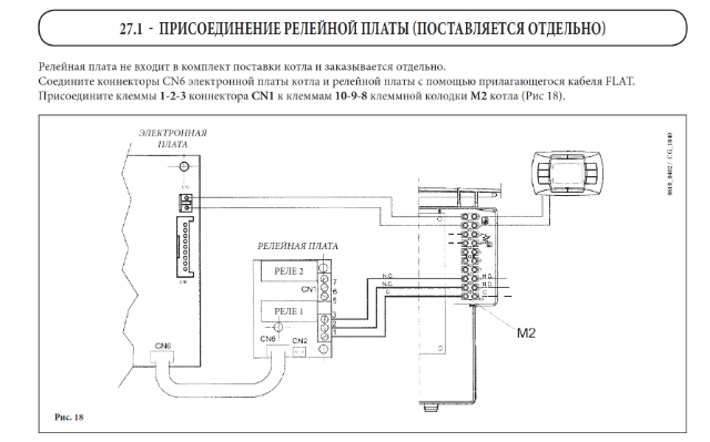 Подскажите пожалуйста, имеем baxi nuvola 3 comfort, купил интерфейсную плату KHG 71410651, выносная панель baxi подключена согласно мануалу, интерфейсная тоже. Сейчас не могу понять одну вещь, контакты 1-2 на M1 должны быть сухими (безпотенциальными) или же 230 ??? У меня есть термостат, который имеет сухой контакт, хотя его можно подключить и с напряжением на выходе, но суть вопроса таже. Я планирую подключить 2 дополнительных термостата , инструкция говорит подключить их параллельно к М1 на контакты 1-2, но там не сказано какой контакт должен быть сухой или мокрый, я не планирую контролировать насосы и сервоприводы, мне необходимо только включать и отключать котёл по заданной температуре в определённом помещении, выносная панель подключилась с сухим контактом и в инструкции на это обратили внимание, а на м1 непонятно.