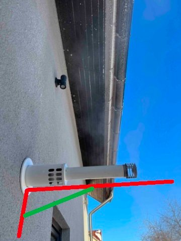 Спасибо, не отказываюсь, сегодня заберу удлинение коаксиала 0,5 метра, вытащу из него внутреннюю трубу и приделаю ее к выходу выхлопа и посмотрим. Зачем весь коаксиал то удлинять ? Проблема то только в выхлопе. Если метр-полтора, то тогда придется уже городить красный уголок, только при уголке придется его в фасад дюбелировать и потом эти дырки уже не заделать, если не сработает/не понравится.Starik писал(а): 13 янв 2023, 10:54 Вот зря отказываешься от предложения просто удлинить коаксиал. Подпорку не надо в землю упирать, просто сделать на подобии крепления кондиционера, трубу к ней хомутами подвязать. Вот на твоей фотке попытался изобразить (зеленый упор не обязательно делать).коаксиал.jpg
