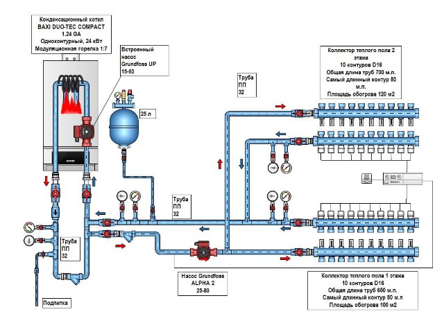 Схема отопления жилого дома 220 м2