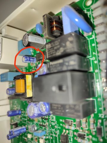Решил проблему заменой электролитического конденсатора C6 4,7 мкФ 100v. Поставил конденсатор 4,7 мкФ 400v.