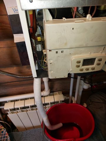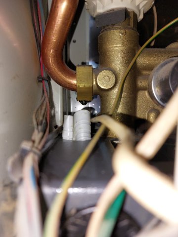 После 6 лет эксплуатауии начал подкапывать теплоноситель в месте подсоединения медной трубки теплообменника к трёх-ходовому клапну. Капли стекают по латунной гайке (см. фото)