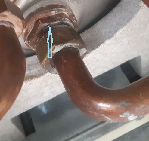 Сочит с латунного штуцера подачи (с трех ходовика) теплообменника в бойлере. Была дума о трубке соединения с трехходовым, но при детальном рассмотрении после замены прокладок , явно видно что течет по резьбе из под гайки самого штуцера (или это что то вроде футорки).
