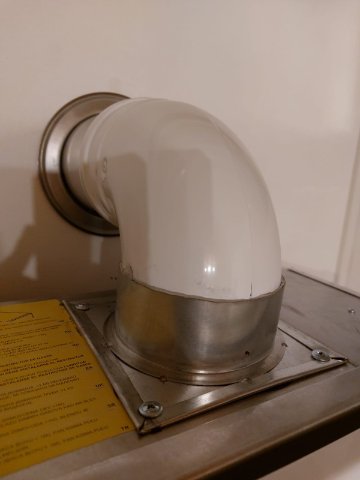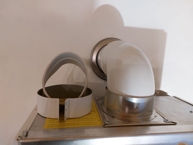Единственное что колено для трубы у меня было без фланца, просто коаксиальный изгиб 90 градусов, сидит плотно.