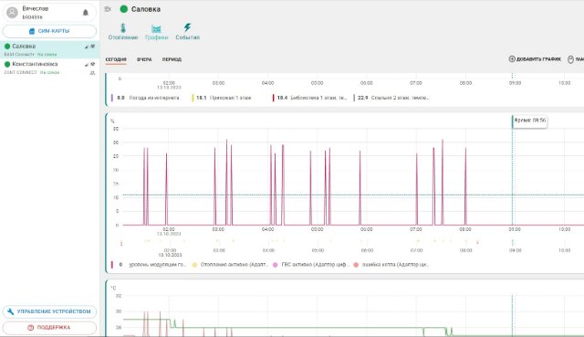 Судя по графику на 3 минуты не похоже. Включается вообще с большими перерывами.Shurkec писал(а): 13 окт 2023, 14:27Каждый 3 минуты включается котел - так? Попробуйте выставить 10 мин - пауза увеличится или нет? Ну чтобы просто понимать из-за этого или нет.