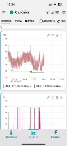 Ну так покажите графики 1 - 2 часа! Что там можно рассмотреть за сутки?! И не дергайте за это время котёл на ГВС.