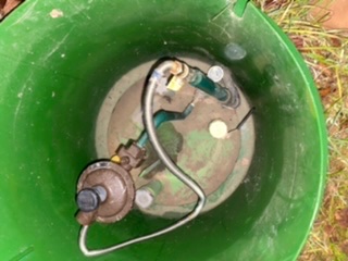 Газ находится в газгольдере. Он закопан на участке. Из него в дом приходит что то (не знаю что)
