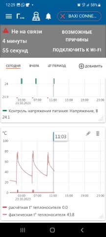 Господа, добрый день! Целый месяц мучаюсь с настройкой приложения! Уверен, что где что не включил... Вот что у меня происходит: Подключил в загородный дом газовое отопление и чтобы следить за ним купил и подключил baxi connnect +. Подключил через OpenTherm. В доме также есть датчик температуры воздуха и датчик уличной температуры. На котле выставлена температура 50 градусов.