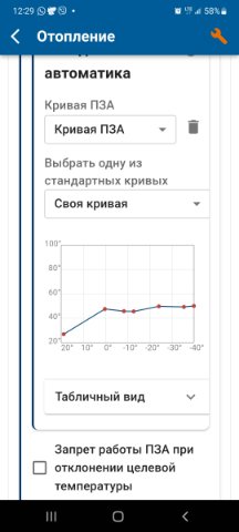 Да , я это наблюдаю... Только вопрос один.. Где этот параметр найти в приложении... За целый месяц я выучил приложение и настройки этого режима нет. Причем прошу отметить, что в скринах я показываю, что я установил ограничение ТН +58.. Но котел отказывается этот параметр отрабатывать....tsv63 писал(а): 24 окт 2023, 21:07 Упс, а кто ни будь обратил внимания на расчётную температуру теплоносителя, на прилагаемых ТС графиках? Почему она 0 и откуда котёл берёт себе уставку для ТН?