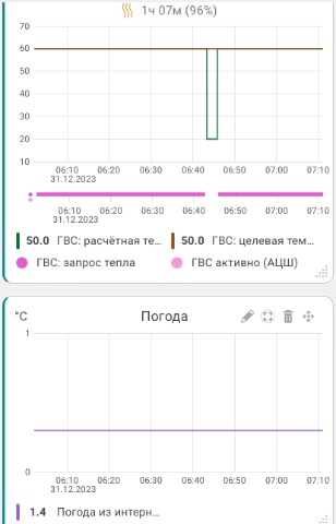 Ну так покажите графики 1 - 2 часа! Что там можно рассмотреть за сутки?! И не дергайте за это время котёл на ГВС.