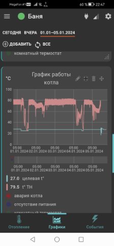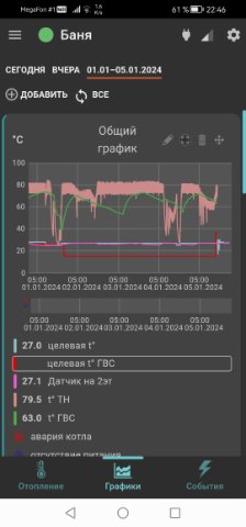 котел слим стоит на своем месте. недалеко косвенник.к косвеннику выведен как и положено датчик от котла. до подключения зонта н1 (версии 404, какая то переходная меж самой старой н1 и версией с вайфаем уже) как обычно все работало. втавили зонт через плату адаптера опентерма. и 1 термодатчик воздуха. по нему он поддерживает нужный градус. с этим справляется. но по горячей воде он перегревается. ставишь 40 гвс. в итоге 65 типа нагрелось. и снижать не собирается. пока тупо виртуальный ползунок отключения гвс не переведешь в положение выкл гвс.