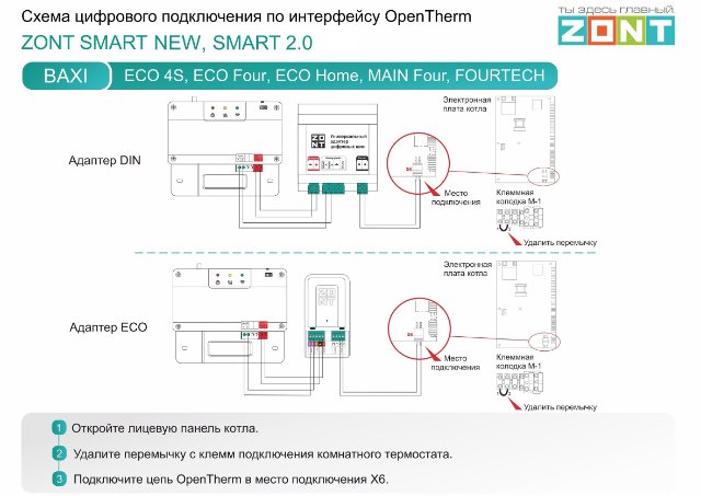 Подскажите правильно ли понял схему подключения Zont к котлу Baxi EcoFour 1.24F?