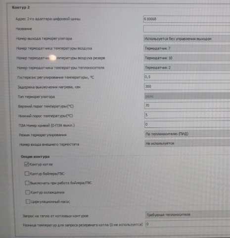 Настройки второго котла вот такие, на первом так же, только стоит галка на ГВС, прошу прощения за фото