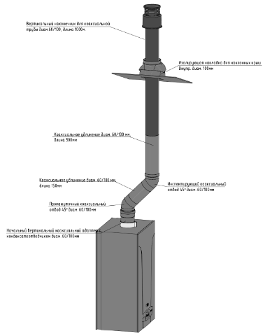 Котел Baxi Luna 3 Comfort, коаксиальный дымоход вертикальный через крышу.