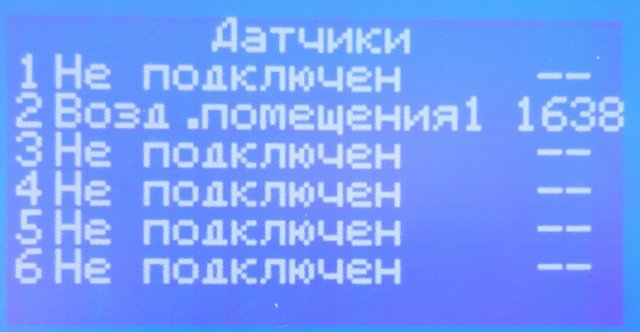 Подключил датчик из комплекта котла к входу №2, температура в меню "датчики" стала 1638 градусов, в общем меню прочерки. Взял второй датчик из комплекта - то же самое.