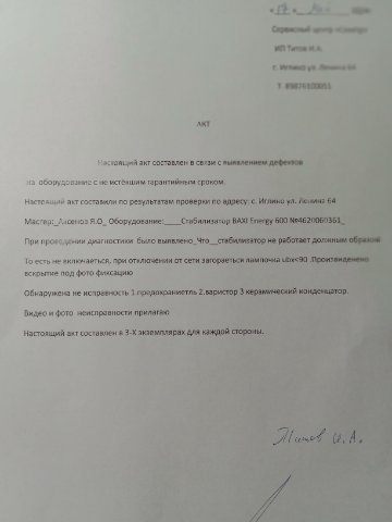 Стабилизатор Baxi 600. Гарантия. Куда и как и кто виноват