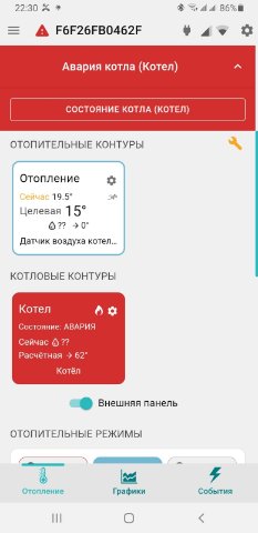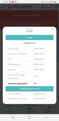 Если открыть "состояние кота (котел)" - то у котлы аварий нету в период появления ошибки аварии на baxi connect+.