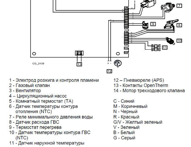 Здравствуйте. Буду благодарен за ответ на вопрос: куда должен быть подключен датчик внешней температуры. В инструкции написано к цветным проводам, но не указано к каким. Спасибо