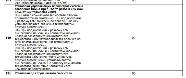 параметр F10 = 01 (греет на максимум воду, и потом долго остывает, самый лучший вариант если дом менее 90 квадратов и мало теплопотерь)