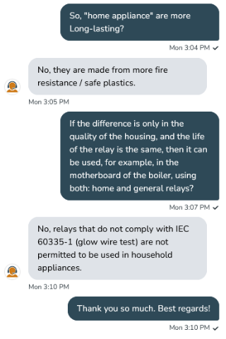 Они заверили, что бытовые реле гораздо пожаробезопаснее, чем "общего" назначения и ЗАПРЕЩЕНО в котлах (так и в целом бытовых приборах) использовать "общего" назначения. Так что смело берем для бытовых приборов, только "бытовые" релюшки...