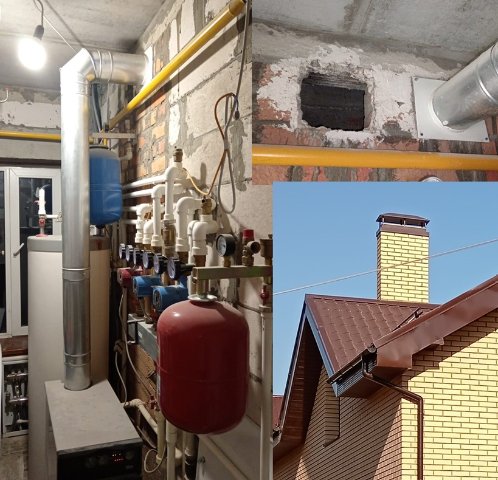 Живу в двухэтажном доме из пеноблока с газовым отоплением. Котел 30кВт напольник Baxi Slim 1.300 in дымоходом д150 присоединен к шахте из красного кирпича сечением 750х150. В эту же шахту имеются входы 200х200 для ЕВ из помещения котельной (14м3) и гостиной с кухонной зоной (на плане №2, не используется).