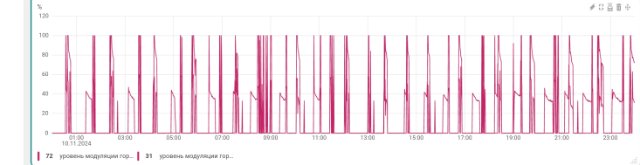 Вот, я даже на ночь психанул и выставил желаемую 10 градусов температуру в котельной, по моей логике все графики должны быть по нулям, а что это за пилы опять я никак не пойму