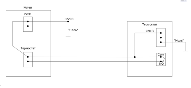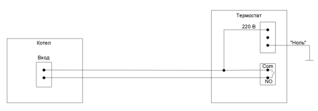 Тоже неверно. Читай выше. И такие термостаты легко подключают к котлу. Достаточно фазу пробросить. Ноль не нужен будет.
