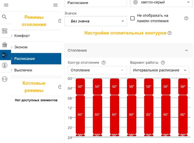У меня стоит дневное в расписании. Там же ниже графы- Комфорт, а температура +22 с 0 до 24 часов.Дачник77 писал(а): 19 дек 2024, 18:43 Спасибо! Направление понятно.