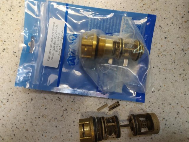 Собрав весь клапан (с коротким картриджем), не устанавливая на котёл - проверил так ли как нужно работает картридж, подавая питание на мотор, всё открывается и закрывается как надо. Установил клапан в котёл, всё собрал - работает.