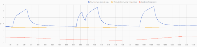 1. Настроить работу термостата по датчику с более высокой частотой обновления показаний. Сейчас подключен датчик с частотой обновления показаний 1 раз в 30 минут, что приводит к перерегулированию.