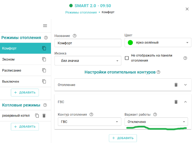 Не соглашусь.Юрий_ писал(а): 16 янв 2025, 09:08 Верно, есть такой, но там настройки только контура отопления. При нажатии "выключить" отключается только он. ГВС продолжает работать.