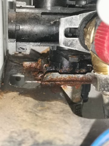 Всем добра! Долгое время я и обслуживаюшие сервисники-газовики не обращали внимание на соли между гидрогруппой и выходом подачи. Недавно стало капать. Полез внутрь, а там уже пошла капитальная коррозия. См фото: