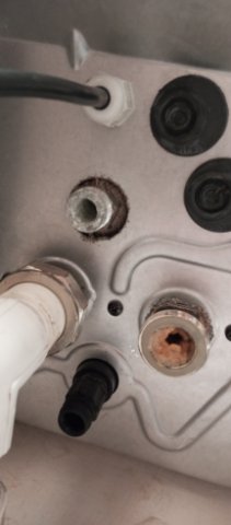 Добрый день, на первом фото то что было на выходе горячей воды, почистил, не помогло, поменял теплообменник, тоже не помогло. В итоге стало протекать, где ГВС, (на втором фото), и падает давление. Что с этим делать ума не приложу. Еще одно, когда я включаю горячую воду, значок крана не мигает, может датчик вышел из строя какой-тоBahus писал(а): 23 мар 2025, 19:29чем оно понятно-то? Горячая вода это та же самая холодная, только пропущенная через котёл. Соответственно и расход должен быть примерно одинаковый. А у вас в шесть раз хуже.
