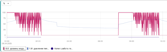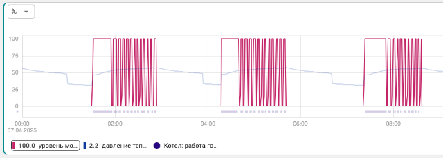И такая ерунда во всех режимах. В качестве уставки в котле устанавливается максимальная температура контура. И котел мучается, сам нужную температуру поддерживать не может, т.к. его постоянно вырубают. Снаружи, внешняя автоматика, модуляцией мощности не управляет. Она его просто вырубает.