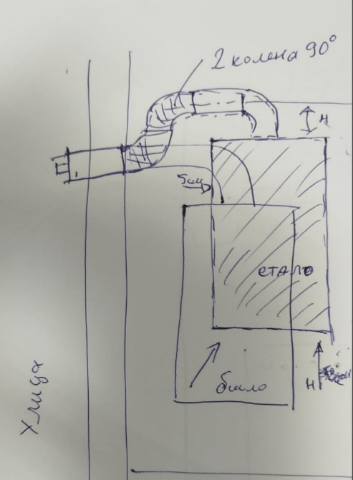 Дымоход 3 колена ВВЕРХ-->Вниз->на улицу