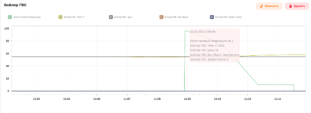 Но у меня ощущение, что зона ГВС на контроллере просто включает тумблер котлу, мол "надо греть ГВС", и котёл уже, козырнув, это исполняет по своей логике. Но вот где эту логику настроить, какие там гистерезисы и т.д.?