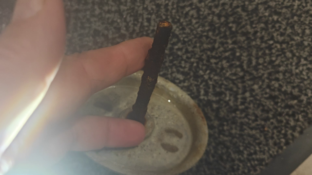 2. Фланец на двух болтах, открутился легко, снялся с трудом, не сразу. Сразу скажу, что с целым анодом фланец не снять - есть риск упустить его внутрь бака. правильно будет отрывать фланец при неполностью открученных гайках. Я не стал выворачивать старый анод и использовал его как пробку. Его здорово съело, поэтому и снялся фланец относительно легко. остался конец стального прутка длиной около 8 см. Заглянул внутрь - осадок есть, но его не достать, в принципе не так много и не так страшно. Осадок рыхлый и извлечь его можно или растворением, или только размыванием водой. 3. Растворил в двух 5-литровых бутылках 1,5 кг лимонки, воду из бака до конца не сливал, вылил раствор лимонки. Поставил на место фланец, прокладку не менял, хотя новую купил. Старая, кстати, в нормальном состоянии. Открыл воду, заполнил систему, включил котел. Грел воду до 50 град часов 5, потом слил. Снова снял фланец - результата практически ни какого. Но вода в начале и в конце промывки - разная по кислотности, определял на вкус. Вероятно, нужно применят какую-то более злую химию.
