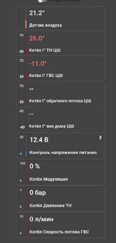 Остальное по своим датчикам. Комнатные проводные-беспроводные, напряжение. Словом всё, что непосредственно к контроллеру подключено. Но это уже не про котёл.