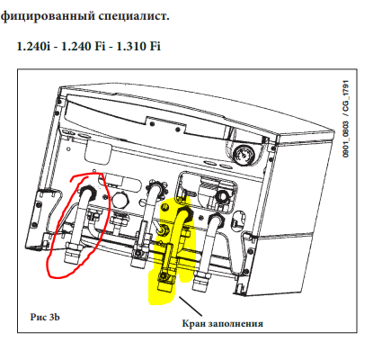3) Допустимо ли выполнять подпитку / заполнение системы отопления через кран «подача в систему отопления»? В инструкции к котлу указано, что заполнение проводится через "кран заполнения" он же "кран подачи холодной воды в ГВС" для одноконтурных котлов.
