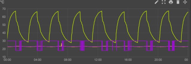 Теряется смысл если к нему еще добавлять таймер. Будем наблюдать за его работой. Если что поменяю на котел который дает более широкий диапазон настроек, как выбег насоса и т.д. Многие говорят что это идеальная работа котла, когда он держит заданную температуру теплоносителя без выключения горелки и нагревает дом до температуры на термостате. Может и так.