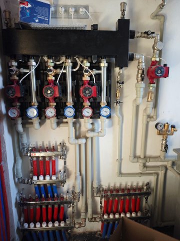 Отдельным насосом, который управляется котлом. Подоплеку вопроса вроде уловил. Общая температура ТН сейчас выставлена на 60, радиаторы больше греть не планирую (дом с очень низкими теплопотерями). Температура в теплом полу ниже за счёт подмешивания. Сейчас попробую фото прикрепить.