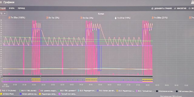 Отдельным насосом, который управляется котлом. Подоплеку вопроса вроде уловил. Общая температура ТН сейчас выставлена на 60, радиаторы больше греть не планирую (дом с очень низкими теплопотерями). Температура в теплом полу ниже за счёт подмешивания. Сейчас попробую фото прикрепить.
